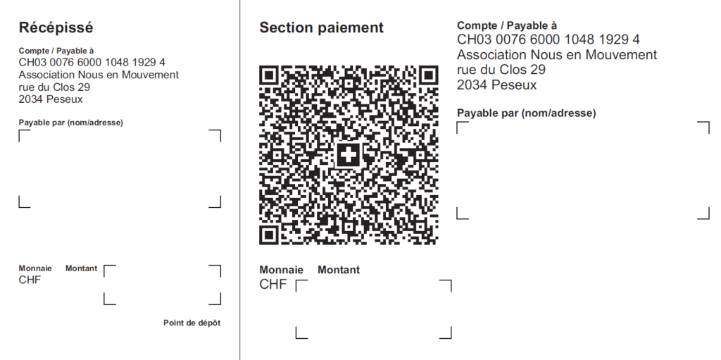 Pour faire un don à Nous en mouvement, merci d'utiliser les coordonnées suivantes :